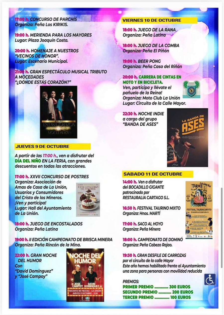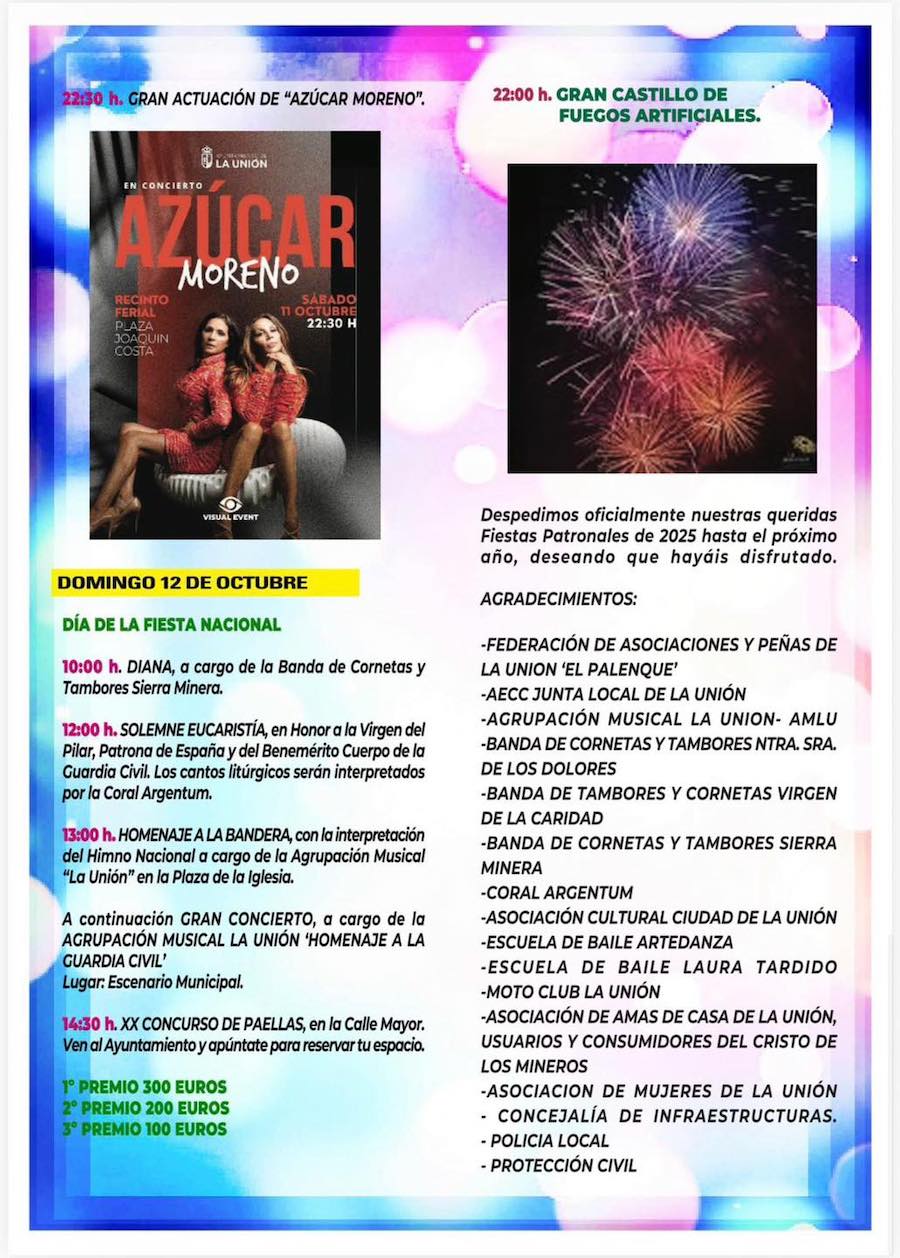 Queda menos de una semana para que comiencen los festejos patrocinales de la ciudad de La Unión, que se desarrollarán del 3 al 12 de octubre. ¿Quiéres saber todo lo que ofrece este año? El programa de actos completo ya se puede conocer pinchando en este artículo y en el bánner que figurará hasta el 'Día de la Hispanidad' permanente en la columna del periódico.