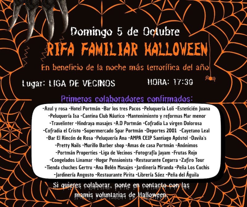 La Liga de Vecinos será el marco donde se desarrolle este domingo una rifa familiar cuyos beneficios serán destinados para la celebración de ‘Halloween’ en el pueblo costero. Los organizadores anuncian que, entre los regalos, hay jamones, quesos y lomos.