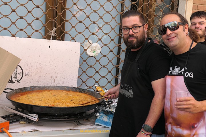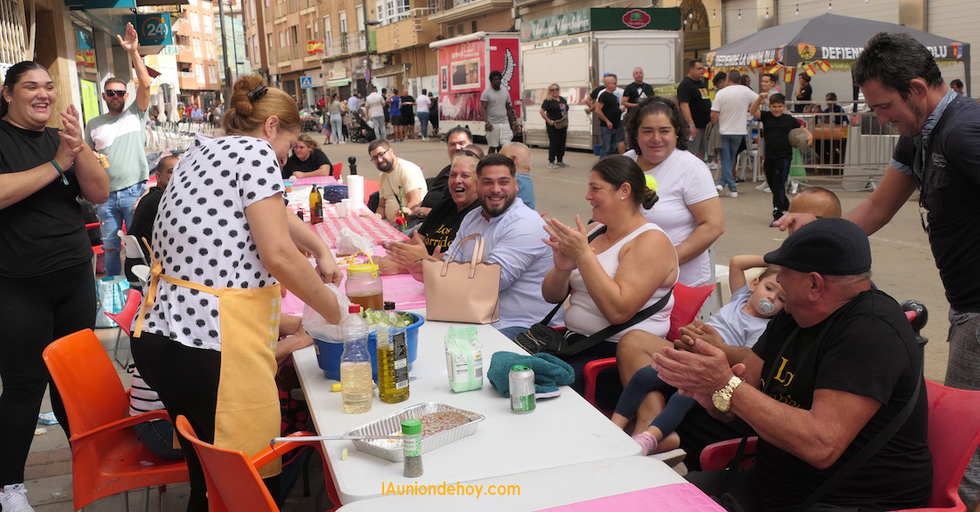 La jornada final de las Fiestas del Rosario ha contado con la celebración del popular concurso de arroces, cuyos triunfadores publicamos en un artículo propio en este mismo periódico, para en éste centrarnos en el muy buen ambiente que, un año más, se ha transmitido desde todos los grupos que se han formado, la mayoría con paelleras en activo, aunque en alguna peña también han optado esta vez por una sartenada de migas. Sin embargo, el capítulo gastronómico ha ido más allá, pues, además de ver varias patas jamoneras como iban 'adelgazando', sobre las mesas ha sido muy amplio la variedad de viandas salados y dulces, pues también en el capítulo de postres ha existido derroche. La animación sonora durante la celebración la han puesto el concierto de la Agrupación Musical La Unión, al principio, para después coger el protagonismo DJ Rául. También reseñar que hubo algo menos de grupos que años anteriores y que entre los visitantes estuvieron el hermano mayor de la Cofradía del Cristo de los Mineros, José Cortado; el cronista oficial de La Unión, Gonzalo Wandosell; y la presidenta de la AECC local, María Hermógenes, entre otros.