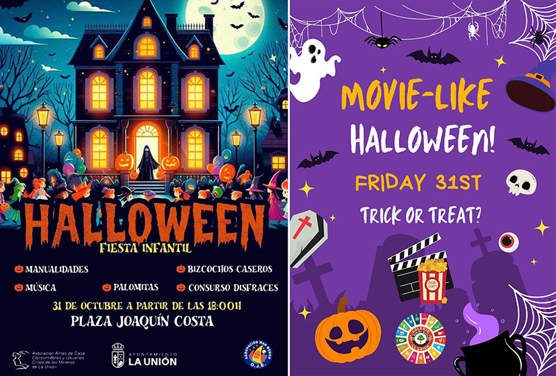 Ayuntamiento, Asociación de Amas de Casa y OJE organiza la fiesta infantil de la plaza de Joaquín Costa de la ciudad de La Unión con un programa que ofrece manualidades, música, bizcochos caseros, concurso de disfraces, etc. Será el viernes, el mismo día en el que la cooperativa de enseñanza Sabina Mora potenciará actividades en torno a esta fiesta anglosajona con la proyección de una película de cine.