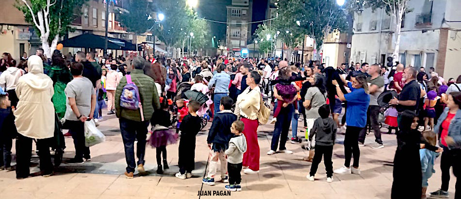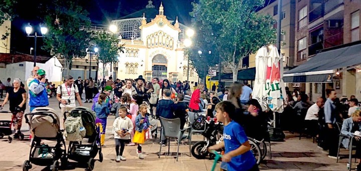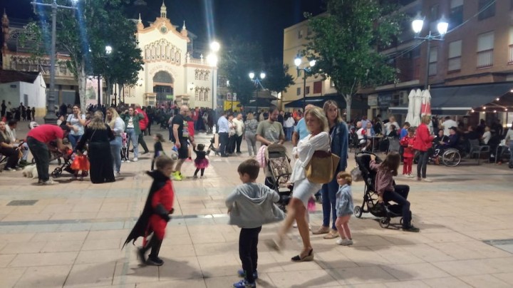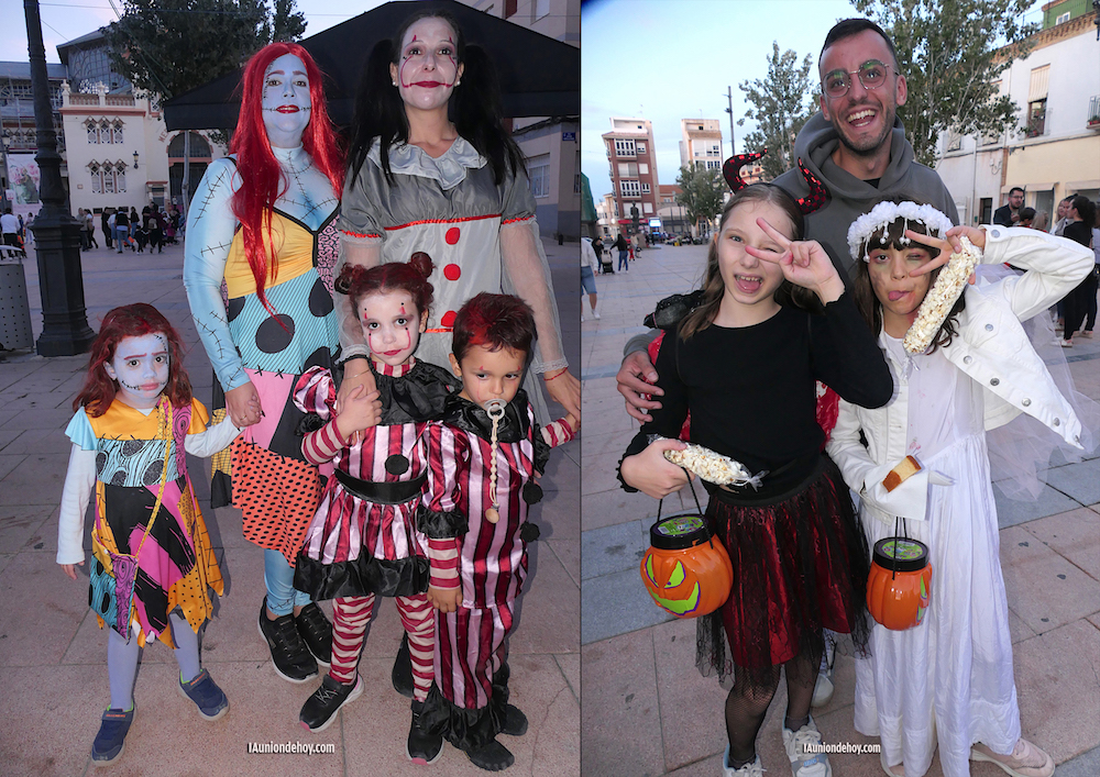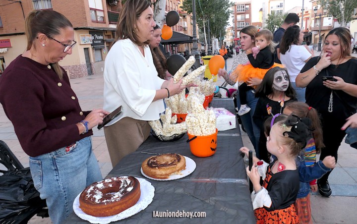 Niños (y algunos mayores) ataviados con terroríficos disfraces participaron en la fiesta de terroríficos muertos que se desarrolló ante la fachada del modernista Mercado Público, donde hubo dos mesas instaladas. En una se llevaban a cabo manualidades coordinadores por la Organización de Jóvenes Españoles (OJE), mientras que la otra era la gastronómica con reparto de bolsas de palomitas y de los sabrosos bizcochos caseros. La tarde también tuvo concurso de disfraces, reparto de premios y regalos a los participantes.