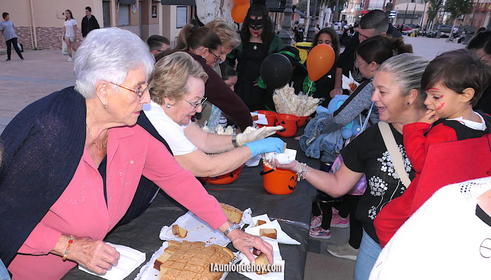 Bizcochos elaborados por la Asociación de Amas de Casa se han repartido entre los participantes de la fiesta de ‘Halloween’ organizada por el ayuntamiento y OJE Mar Menor en la plaza de Joaquín Costa.