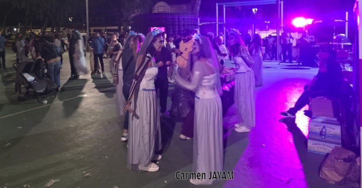 No han faltado tampoco elementos típicos gastronómicos, como palomitas, algodón de azúcar, chuches, bocadillos y chocolate con bollos, además música, de la que se ha encargado DJ Rául.
