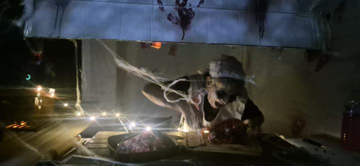 El siguiente foco de atención (y atracción) ha sido un pasadizo cuya temática ha girado en torno a ‘La maldición del huerto del general’, que tiene una base de historia y otra amplia de terror para encuadrarla en ‘Halloween’.