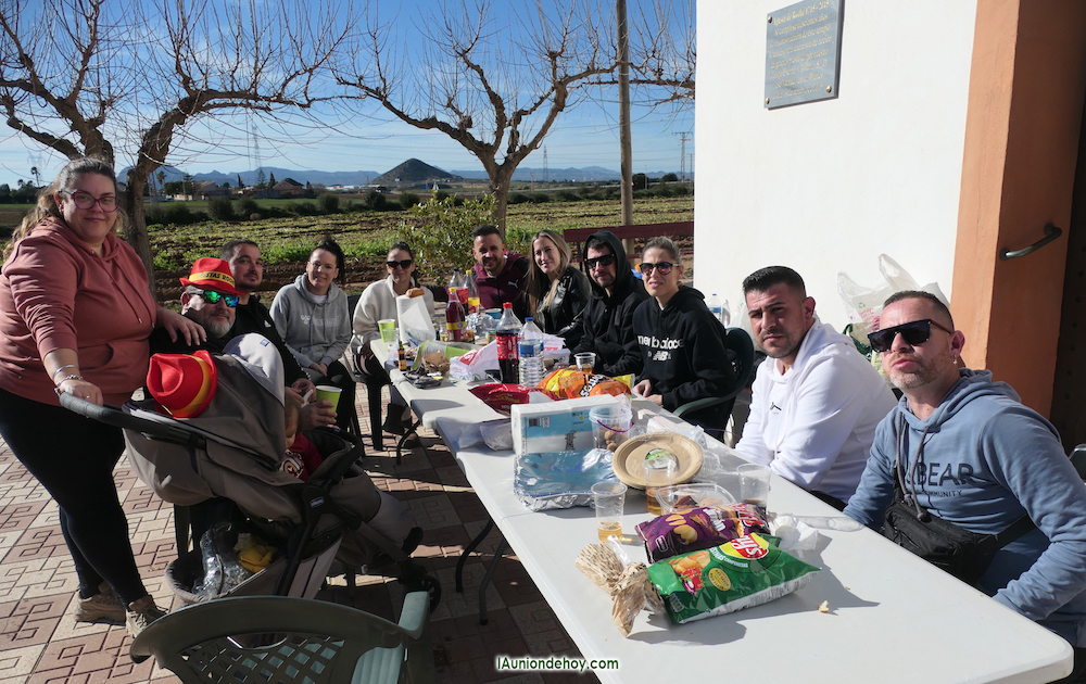 El encuentro vecinal organizado junto a la ermita de Roche vio muy reducida su participación por el frío viento reinante, cuyo efecto se acrecentaba debajo de los pinos.