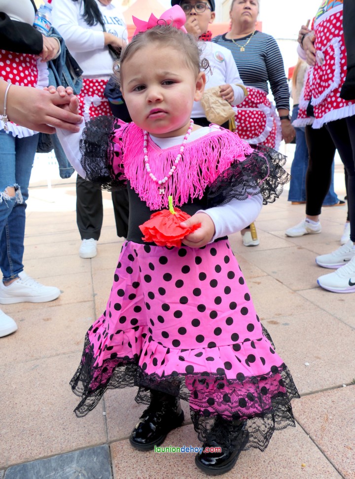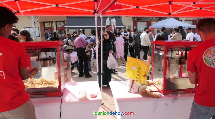 La propuesta incluía juegos populares, hinchable en forma de castillo, talleres, regalos de gorras y chapas conmemorativas y, entre otras, degustaciones gratuitas de palomitas, perritos calientes y bizcochos de azúcar y de nuez, además de chocolate. También se repartían botellines de agua y, próximo al monumento al minero se colocó un pequeño escenario con la bandera del pueblo gitano como fondo, siendo este espacio el más utilizado para los bailes.