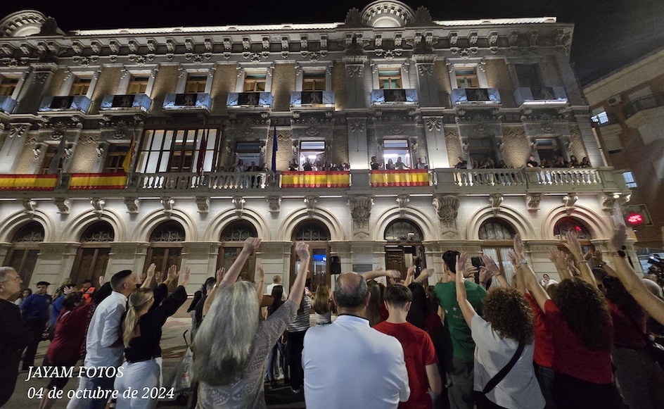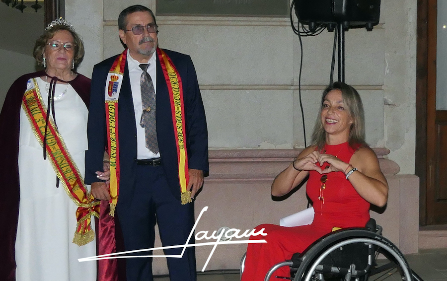 La unionense más internacional, Sonia Ruiz, quien a lo largo de su espectacular carrera deportiva atesora un amplio ramillete de éxitos, además de participar en dos Juegos Paralímpicos, fue la encargada de ofrecer el pregón de las ‘Fiestas de la Virgen del Rosario-24’ desde la fachada de la Casa del Piñón.