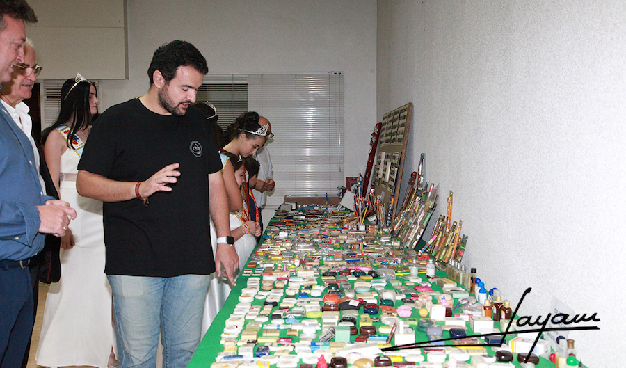 El alcalde, Joaquín Zapata, y una representación de la corte real de las Fiestas del Rosario inauguraron la exposición de colecciones de objetos que organiza Fundación Vedruna y que tiene como marco la antigua sede del Registro de la Propiedad en la calle Mayor de La Unión.