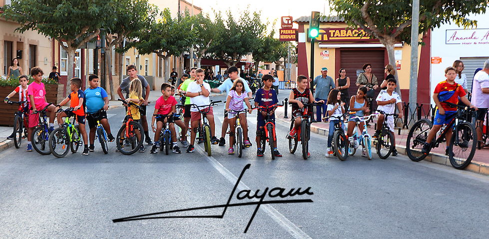 Las fiestas de la villa acogieron en el recinto festero de la calle Murcia los concursos de cintas en bicicleta y en moto, siendo Motoclub La Unión la entidad organizadora. En la foto superior, los participantes infantiles instantes antes del comienzo.