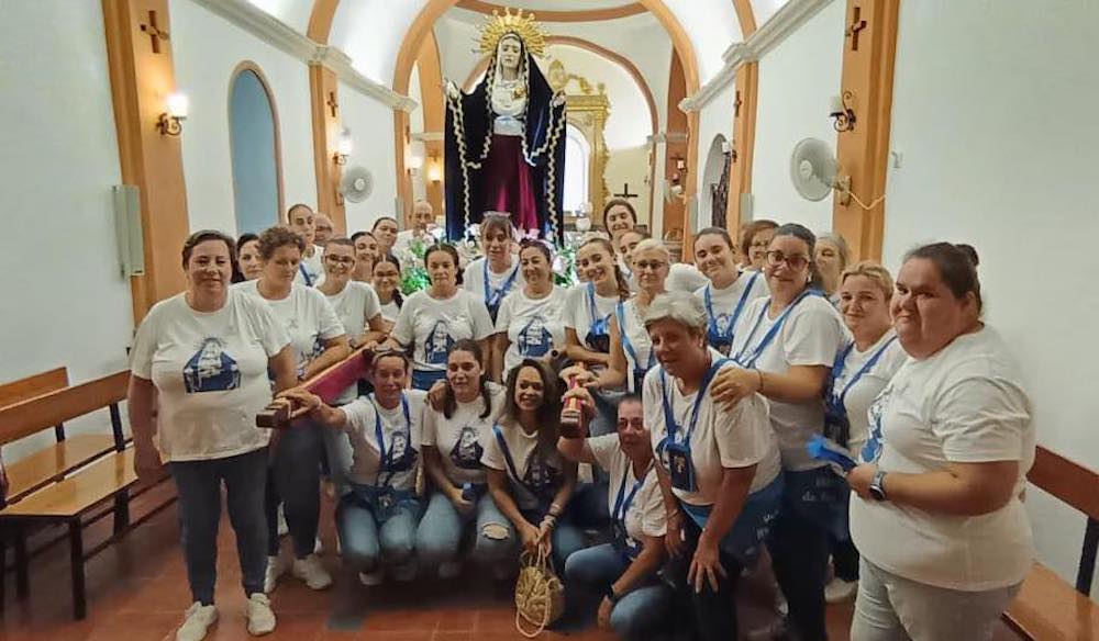 Imagen de la formación del colectivo femenino de costaleras de Nuestra Señora de los Dolores que llevó en procesión en la tarde de ayer a la patrona de Roche.