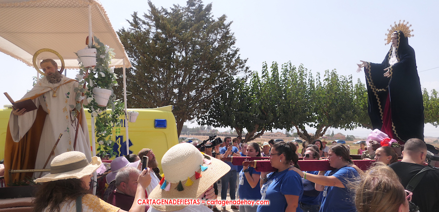 El ermitaño y patrono de Cartagena hará, un año más, escala este sábado junto a la ermita rochera, donde será recibido, sobre la una y media, por la Virgen de los Dolores, a la que los romeros entregarán un ramo de flores. Después se tendrá lugar una comida de hermandad de los asistentes con un gran arroz como plato principal. La imagen después continuará su peregrinaje en una romería de unas diez horas que culmina cerca del monasterio que lleva su nombre.