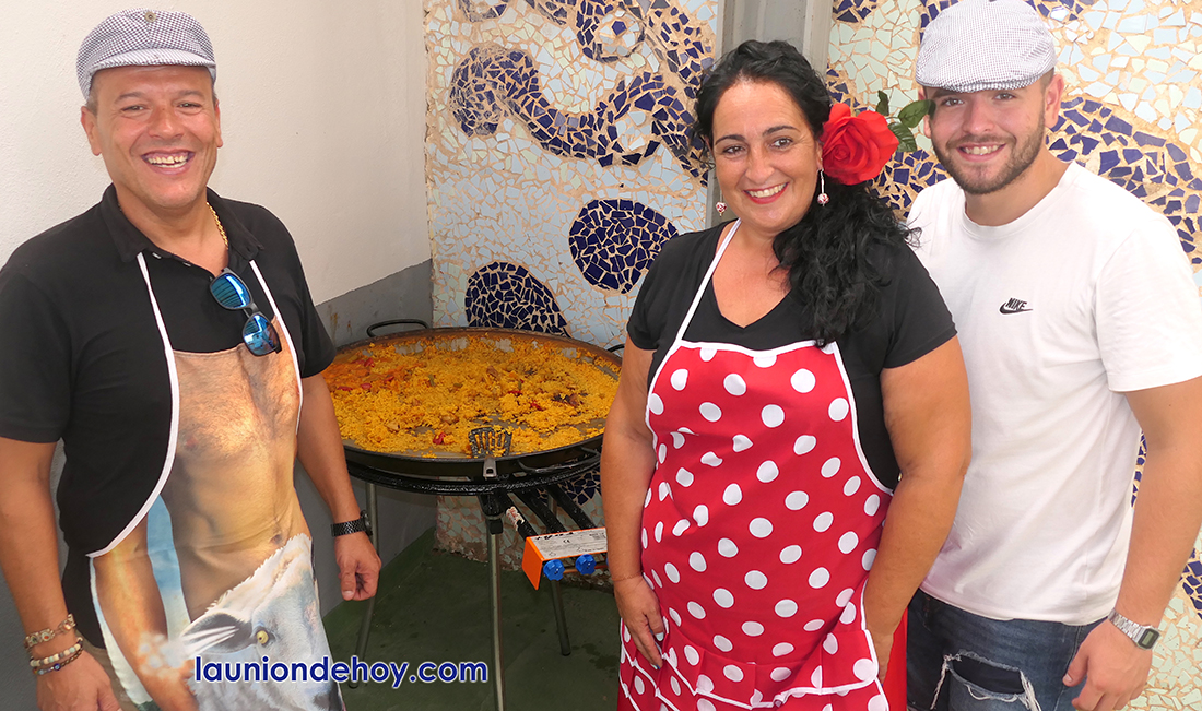 Los unionenses Juanjo Cárdenas y Rosa Gea fueron los que elaboraron el sabroso arroz de las Fiestas de El Algar de la peña 'Los rejuntaos', a la que se acaban de incorporar por tirón de su hijo, Juanjo Cárdenas jr., quien llevaba un año en este grupo y que también aparece en la foto.