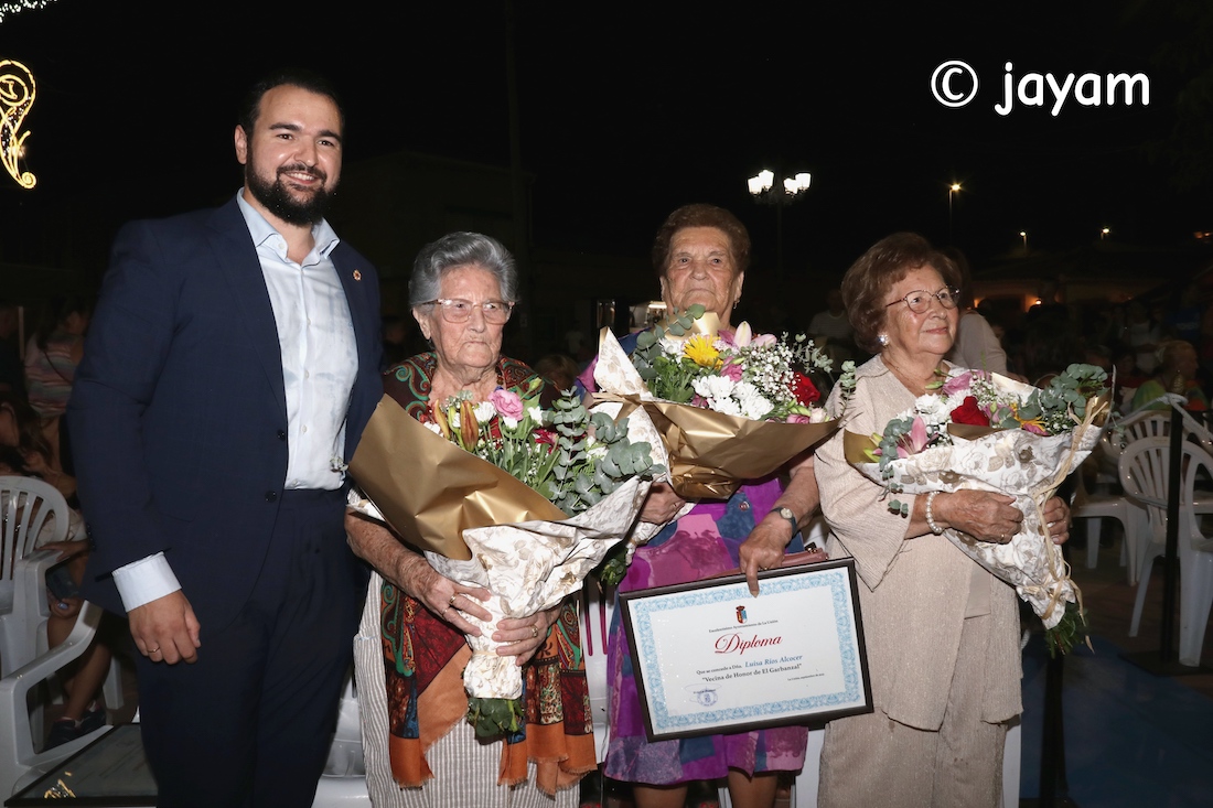 Los títulos de 'Vecina de honor' de la villa de El Garbanzal han recaído este año en Inés Sanmartín Egea, Concepción Jiménez Martínez y Luisa Ríos Alcocer.