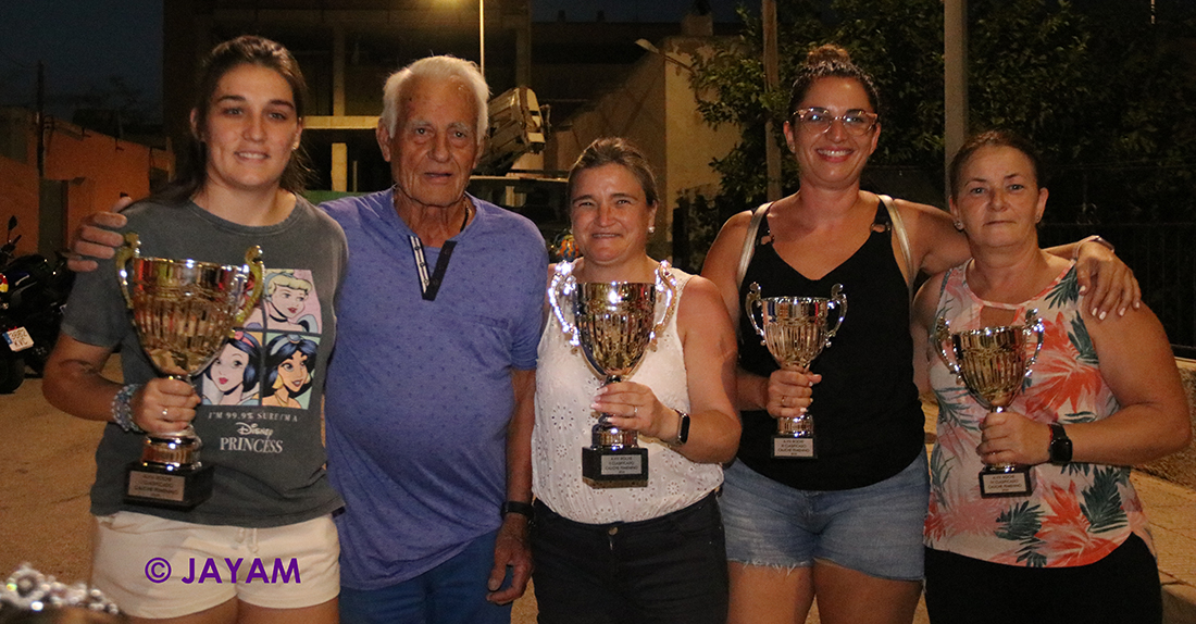Roche es una población que también mima las tradiciones, entre las que se encuentra este juego de habilidad. En la foto, los ganadores del trofeo de las fiestas pedánea, Maribel Lainez Rodríguez.
