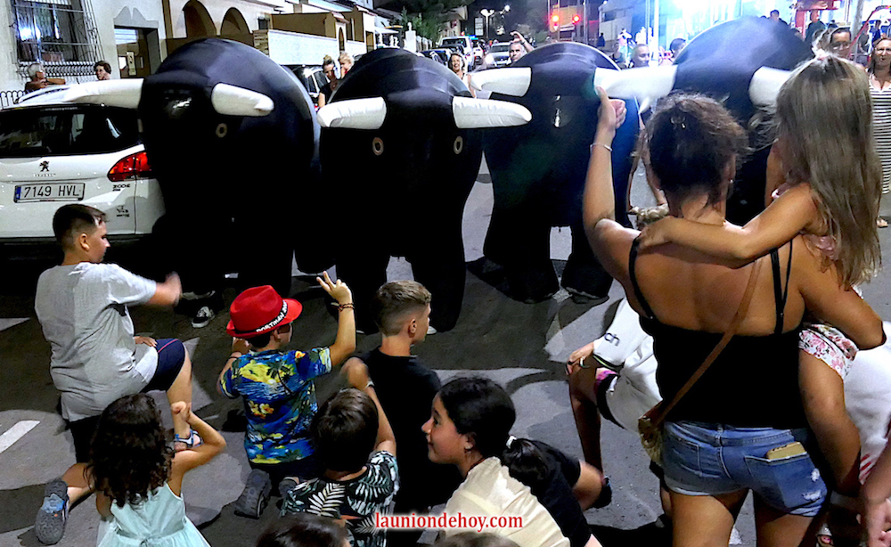 El 'Encierro' infantil regresó a Portmán con 'La noche más loca' para diversión de pequeños (y grandes) huyendo o enfrentándose a los 'toros' mientras sonaba música sanferminera, culminando la carrera en una hinchable plaza de toros, donde los chavales, por grupos de edades, salían al ruedo a divertirse con el 'astado'. Hoy es la tarde de la cabalgata y la noche de variedades.