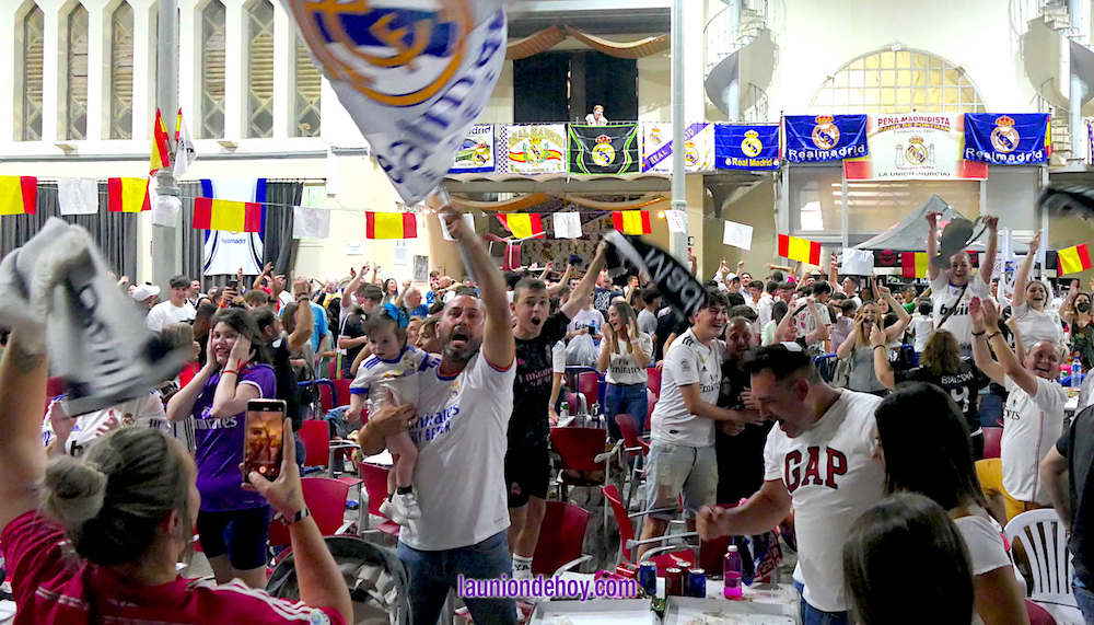 El antiguo Mercado Público, en acto organizado por la peña ‘Bahía de Portmán’, se convirtió en el gran templo de seguidores del Real Madrid para vivir a tope la final que llevó al equipo hacia su décimo cuarto título de la Copa de Europa. GALERÍA DE FOTOS (pinchar aquí)