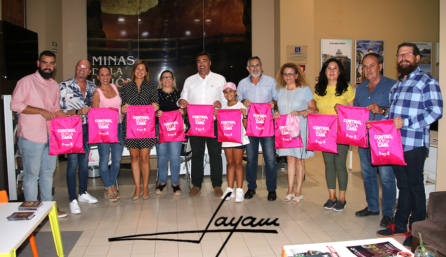 El alcalde de La Unión, Pedro López Milán; el concejal de festejos, David García; y los patrocinadores de la segunda marcha solidaria a beneficio de la lucha contra el cáncer han presentado la cita de este domingo.