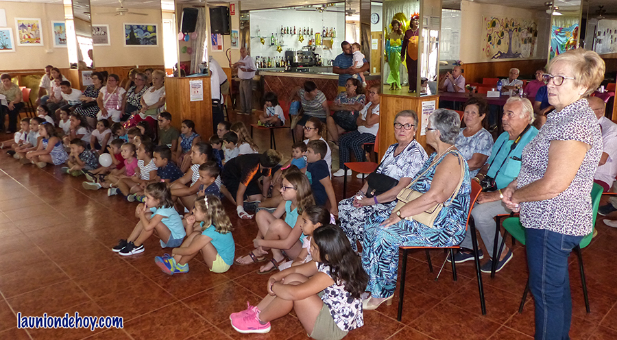 Abuelos y nietos protagonizaron otra jornada del 45 aniversario del centro social de personas mayores de La Unión, que incluyó una chocolatada con bollos, pintacaras y la representación del cuentacuentos 'El pez dorado' a cargo del grupo de teatro CSPM de Archena.