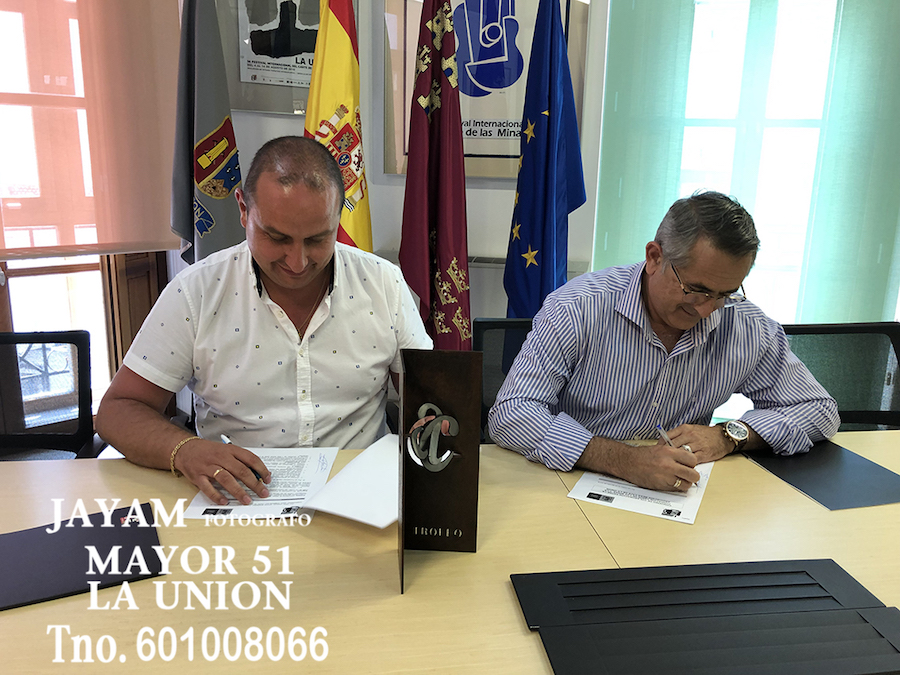 El presidente de la Fundación del Cante de las Minas y alcalde de La Unión, Pedro López Milán, y el presidente de la Asociación Cultural Tertulia Literaria Mesa Café de La Unión y Escuela del trovo, Federico García Marín, han firmado el convenio regulador del 'II certamen nacional del trovo Pascual García Mateos' para el desarrollo del mismo el próximo 10 de agosto, coincidiendo con la jornada final del 59 Festival Internacional flamenco.
