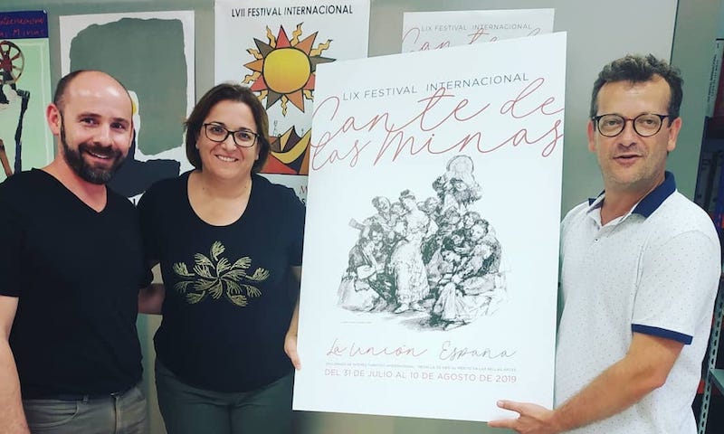 Hoy también recibirá el galardón 'Asensio Sáez' el Festival Flamenco de Lo Ferro. En la foto, los concejales pachequeros Mari Carmen Guillén y Raúl Lledó posan con el jefe de protocolo del Cante de las Minas, Juan Carlos López