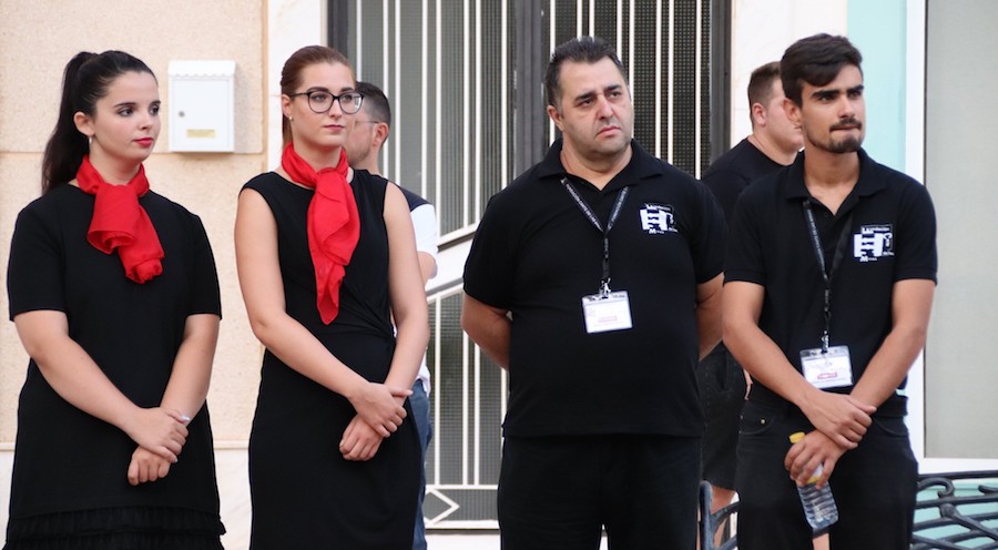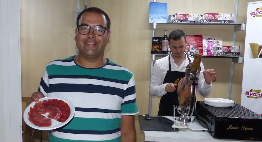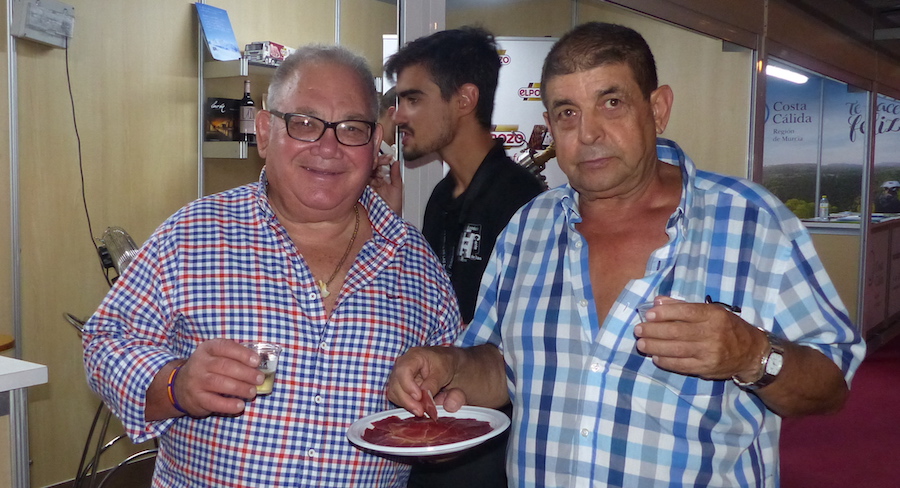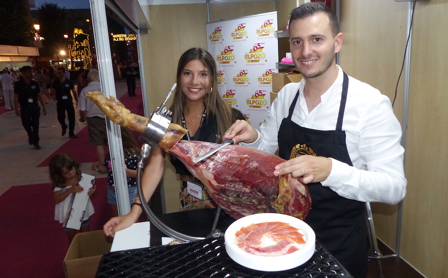 El murciano Javier López fue el cortador de jamón, mientras que la azafata Isabel era la encargada de ofrecer los vasos del maridaje de vinos.
