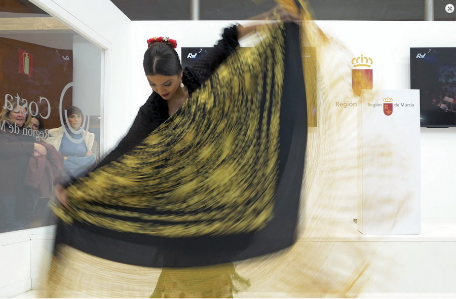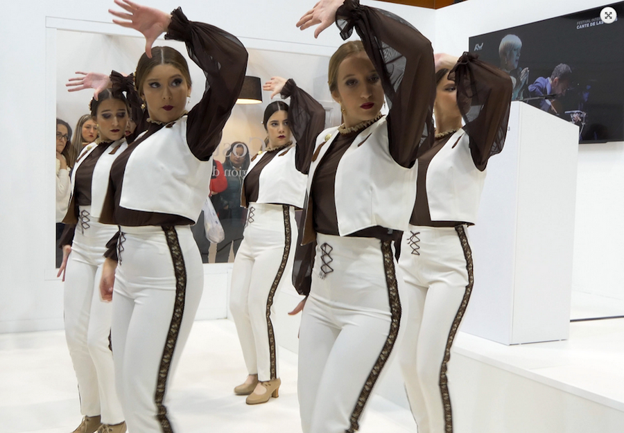 La actuación de las alumnas de la Escuela de baile ArteDanza puso el toque flamenco a la presentación de La Unión en FITUR 2020.