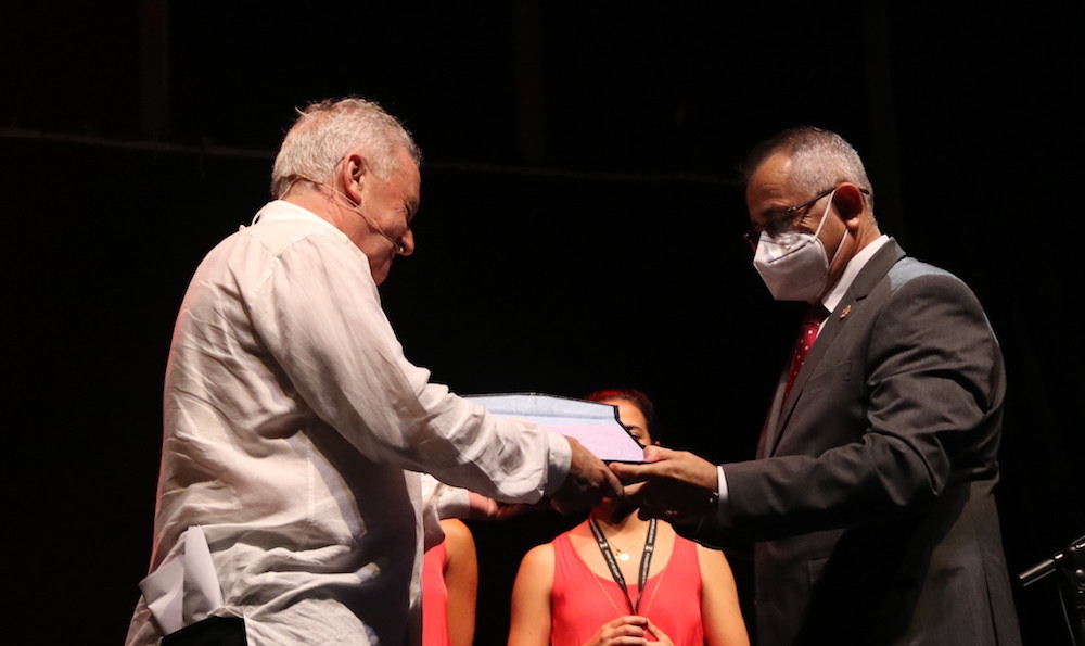Fue Víctor Manuel el encargado de leer el pregón encima del nuevo escenario integrado en la sierra. No dudó en poner en contexto a los asistentes a esta primera gala, recordando su procedencia de una familia de mineros de su localidad natal de Mieres (Asturias), como su abuelo, su padre, sus hermanos, primos y tíos. “La mina y la tragedia como forma de vida siempre ha estado presente en esa cuenca del Rio Caudal donde yo viví hasta los 16 años y donde vivió y sigue viviendo parte de mi familia”, afirmó. “Estamos hablando de trabajos insalubres y desde el punto de vista ambiental, poco deseables, pero no podías elegir, o morías por inanición o ponías tu salud en juego”, recordaba en torno al trabajo en las minas. No dudó en cambiar el concepto de nostalgia en torno a la minería, tanto la asturiana como la unionense, por el de ‘melancolía’, “que es peor, porque trajeron riqueza y desarrollo pero cuando se fueron no dejaron ni migajas de los años de abundancia”.