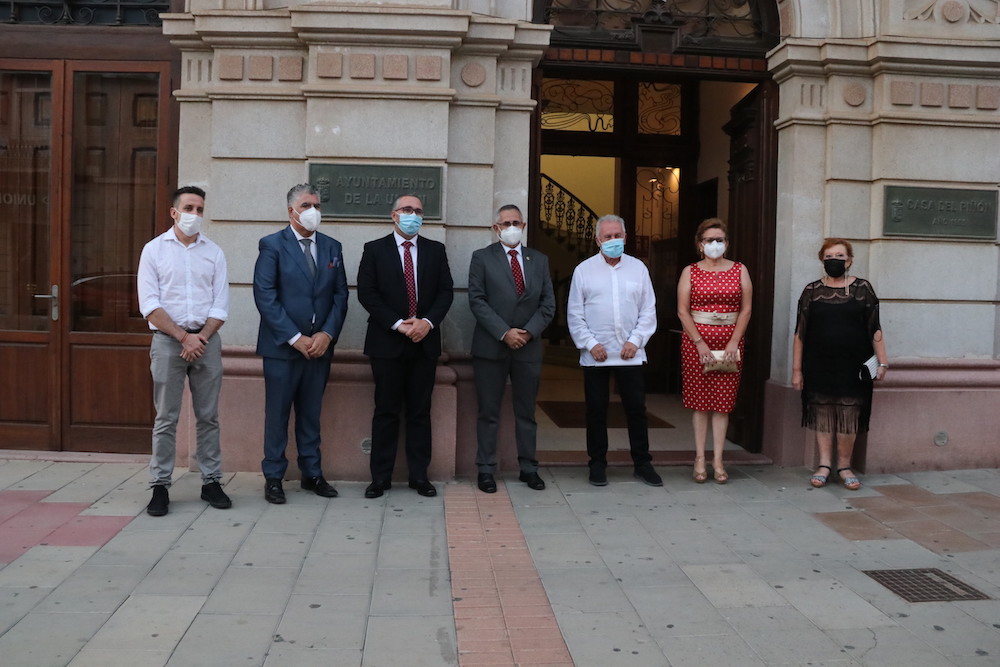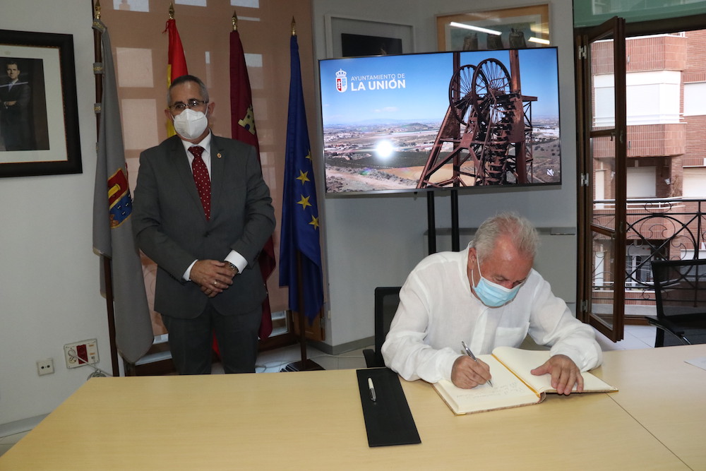 El cantautor también firmó, momentos antes de su pregón, en el libro de honor del Ayuntamiento de La Unión.