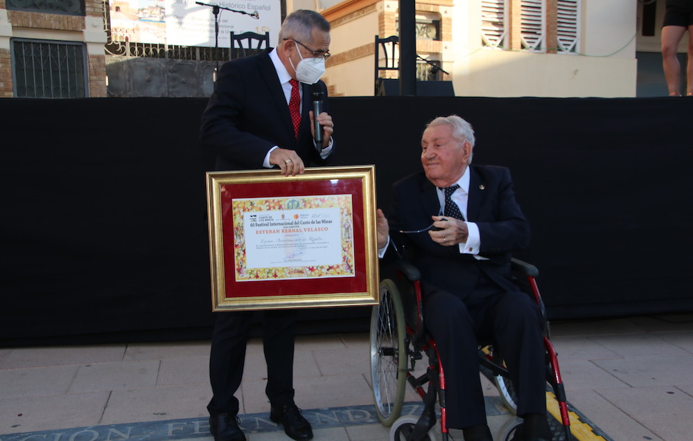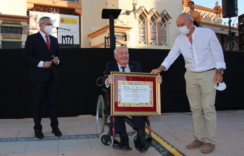 Uno de los momentos más esperados en la Plaza Joaquín Costa fue la entrega del premio de nueva creación ‘Esteban Bernal Velasco’, que tiene como finalidad reconocer a personas o entidades que se hayan caracterizado por su entrega en la defensa del flamenco. Su nombre rinde así homenaje al fundador del Festival y alcalde en aquel momento de La Unión, un visionario cuya pasión por el cante le hizo poner en marcha, apenas sin apoyos a su alrededor, de un evento que a día de hoy es el festival de flamenco más grande del mundo.