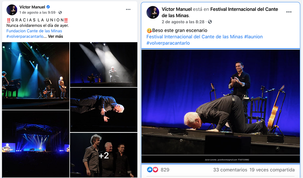 No fue un gesto habitual y surgió de forma imprevista como agradecimiento de Víctor Manuel al cariño recibido en esta tierra y de ahí que la crónica de La Unión de Hoy fuese titulada por ese detalle: La Unión se queda con un beso de Víctor Manuel (pinchar aquí)