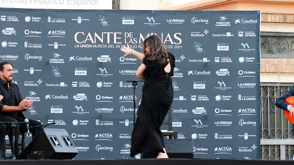 María José Pérez, tras ganar la ‘Lámpara minera’ en 2015, ha actuado en el Cante de las Minas en dos ocasiones y en ambas estaba en estado de buena esperanza. Primero fue cuando deleitó en la Mina Agrupa Vicenta en 2019 y la otra tuvo lugar ayer, en la Avenida del Flamenco. “La criatura me pedía bailar y lo he hecho”, dijo la almeriense.