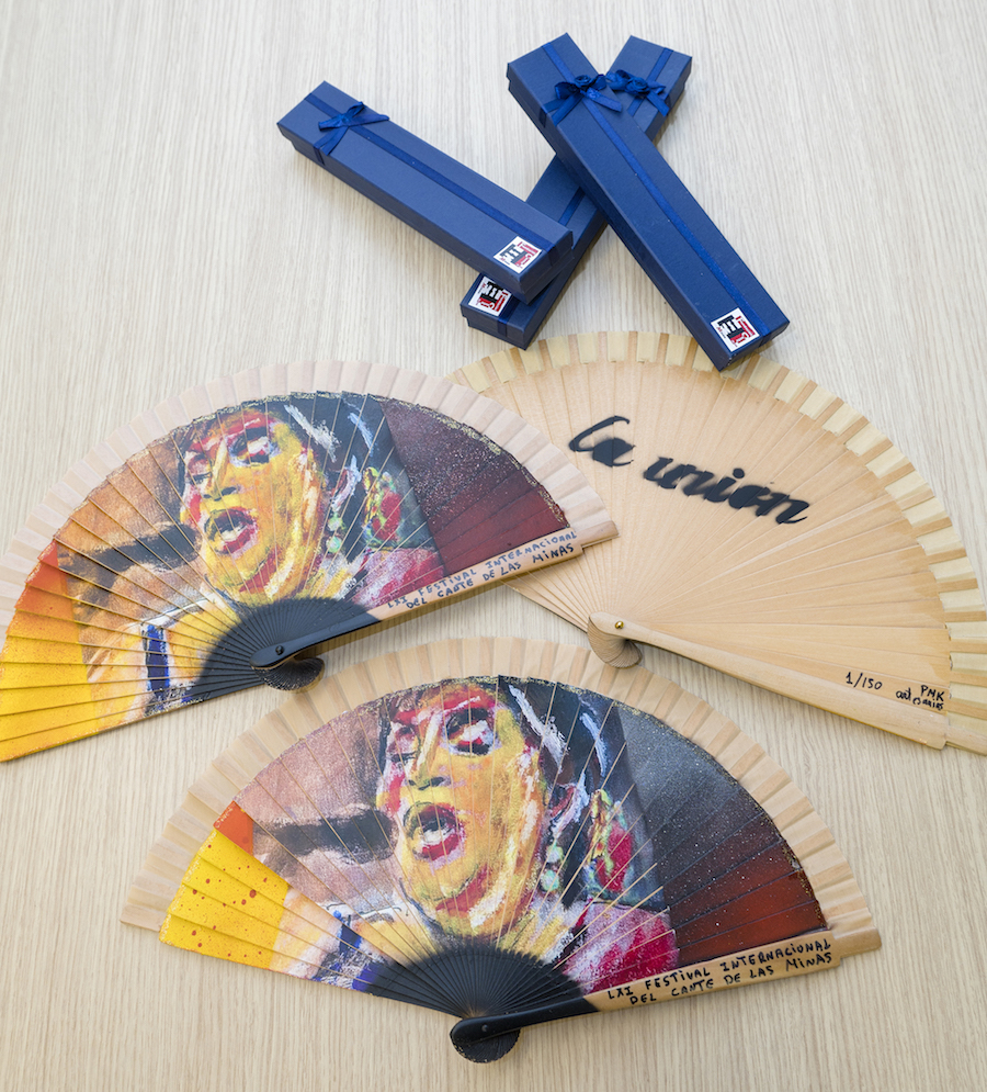Estos abanicos están a disposición de los aficionados al cante, al flamenco, a La Unión y al Festival. Se podrán adquirir durante la celebración del Festival en el estand de PMK Artesanías en la ‘Avenida del Flamenco’, siendo una edición limitada, numerada y estuchada, además de otros abanicos con imágenes de La Unión, del flamenco, del Antiguo Mercado Público, el nuevo trofeo de la ‘Lámpara Minera’ y una edición especial dedicada a Encarnación Fernández, además de complementos artesanales y bisutería flamenca y artesanal.