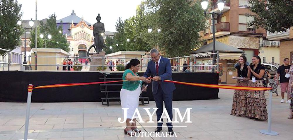 También tuvo lugar el encendido del pórtico. En el tránsito entre el pórtico y la 'Catedral del cante' figuran el escenario de las actuaciones que estos días tendrán lugar en la calle y los puestos de distintas temáticas y empresas, algunos de los cuales ya se mostraron anoche.