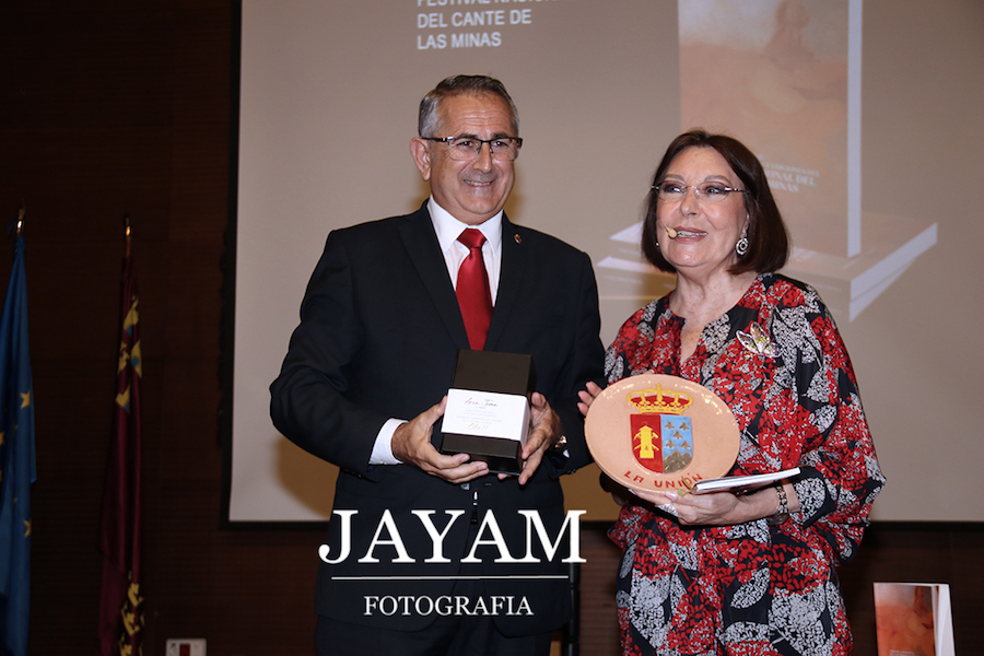 Para finalizar con los homenajes a las personas que han contribuido a la difusión del Festival más allá de nuestras fronteras, el titular del último ‘Carburo de Oro’ fue Ignacio Pérez Péramo. Su implicación es tal que es el impulsor de la prueba selectiva que se celebra en la localidad de Sagunto desde hace 15 años, motivo por el que la Fundación Cante de las Minas ha querido premiar a este unionense con este galardón. “Mi amor al Flamenco y al Cante de las Minas es insuperable”, afirmaba agradecido, quien quiso compartir este reconocimiento con miembros del comité organizador de la prueba selectiva del Festival Internacional del Cante de las Minas celebrada en la localidad de Sagunto. “La relación entre La Unión y Sagunto es muy estrecha, una colaboración que nace por una persona como Ignacio. Un ejemplo de todas esas personas que han contribuido desinteresadamente a difundir y engrandecer el Festival Internacional del Cante de las Minas”, afirmaba Pedro López Milán.