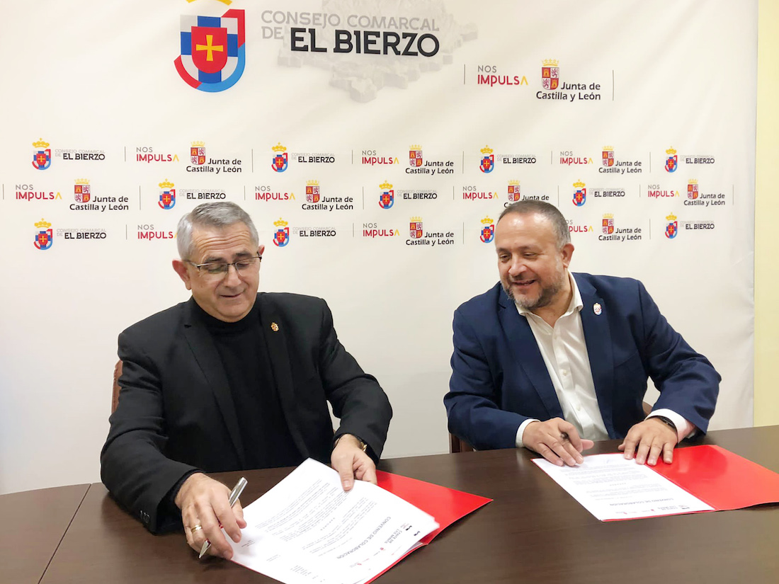 El presidente de la Fundación Cante de las Minas y alcalde de La Unión, Pedro López Milán, junto al presidente del Consejo Comarcal del Bierzo, Gerardo Álvarez Courel, han firmado este sábado un convenio de colaboración para que El Bierzo acoja un año más una de las pruebas selectivas del Festival Internacional Cante de las Minas. El acto contó también con la presencia del director del certamen, Juan Carlos López Alfonso.