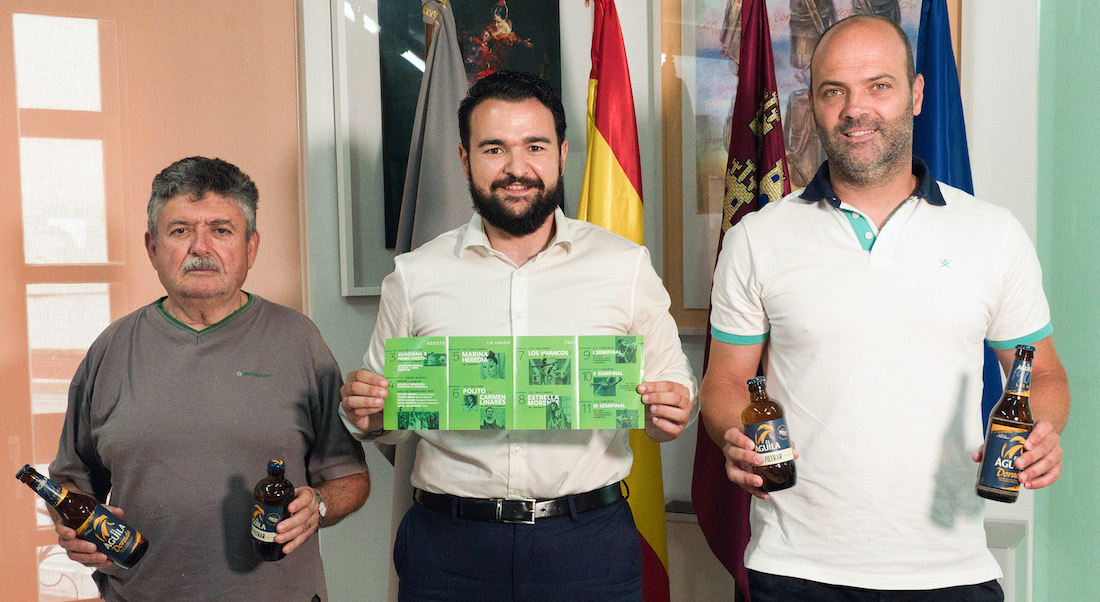 La firma del convenio ha tenido lugar esta mañana entre el presidente de la Fundación del Cante de las Minas, Joaquín Zapata, y el propietario de la empresa distribuidora en la zona, José Ayala Martínez, con la presencia además del director del Festival, Julio García, y el gestor comercial de El Águila, Juan Carlos Celdrán.
