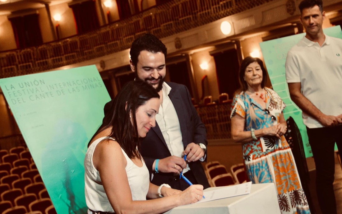 Así se ha acordado en la firma del convenio de colaboración que ha tenido lugar esta mañana en el propio teatro, en la que estuvieron presentes el presidente de la Fundación Cante de las Minas, Joaquín Zapata, la alcaldesa de la localidad, Remedios Lajara, el director del Festival Internacional del Cante de las Minas, Julio García, así como miembros de las distintas corporaciones municipales y la Peña Flamenca de Yecla. Se materializa así un compromiso “que fortalece los lazos entre ambas entidades y contribuye a hacer más Región”, tal y como destacó la primera edil del Ayuntamiento de Yecla. Y es que el hecho de que el Festival Internacional del Cante de las Minas sea el más famoso y prestigioso del género “implica que seamos marca Región de Murcia y Festivales de la Región de Murcia”, haciendo notable la presencia del festival “en nuestra tierra”, según matizó Zapata.