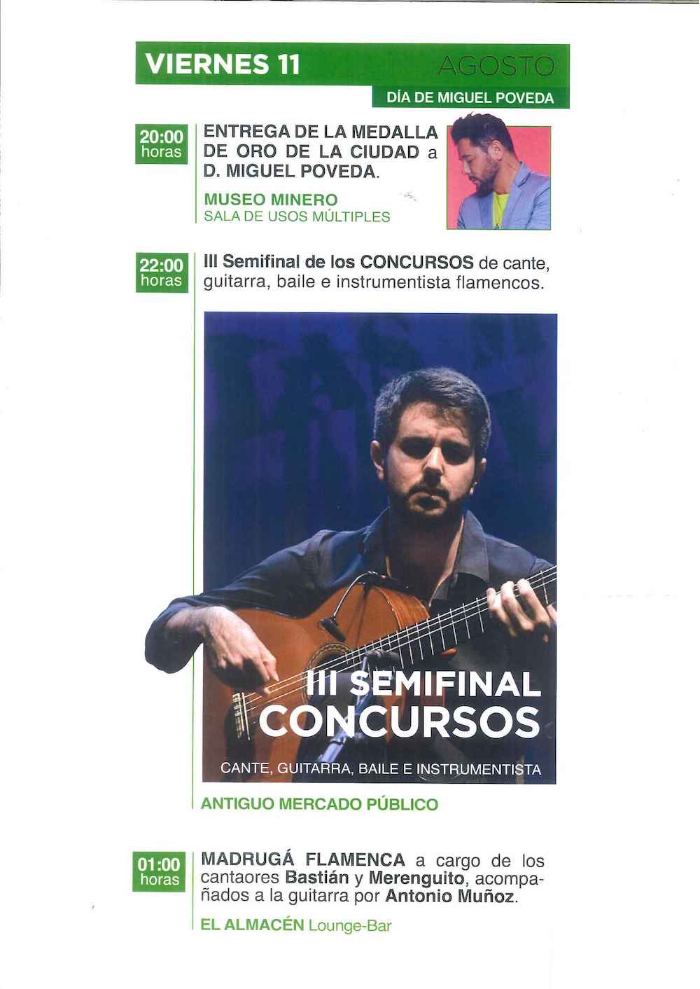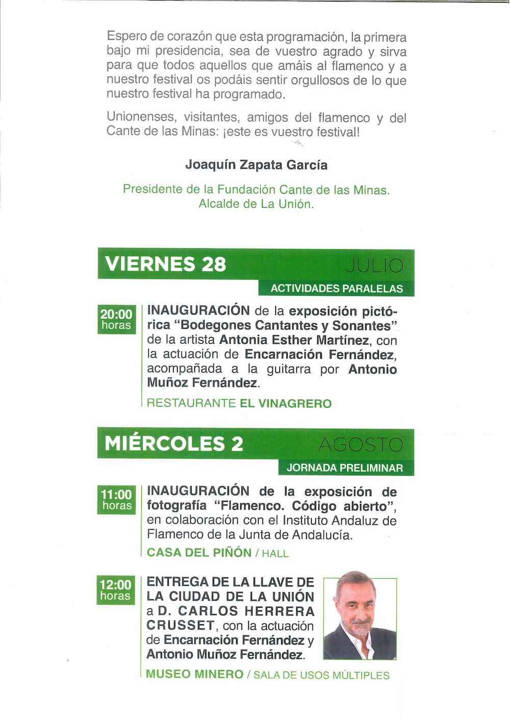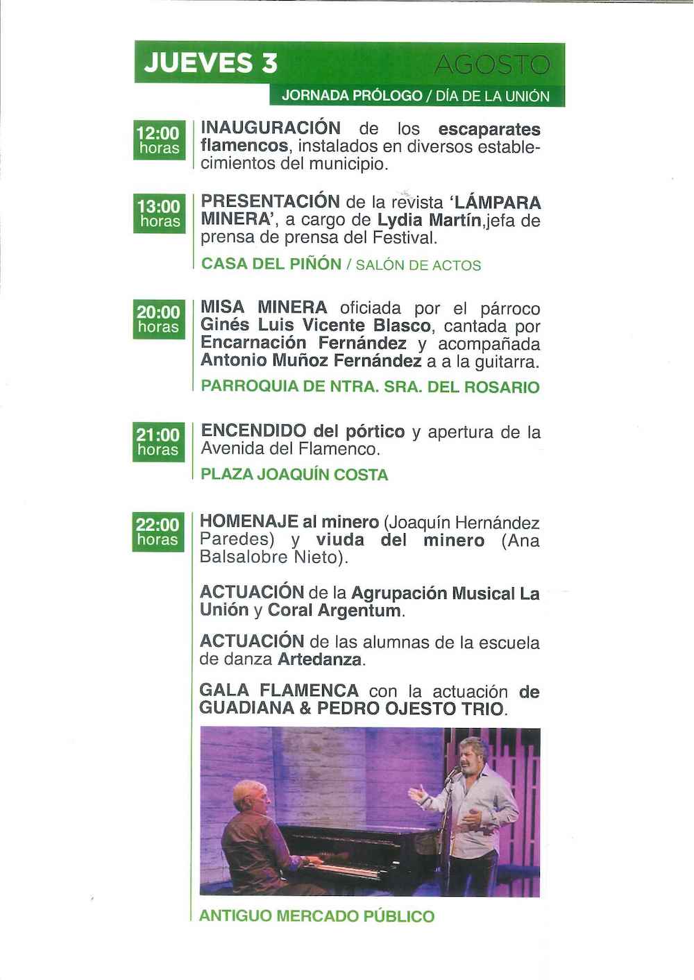 Una exposición pictórica que se inaugura el 28 de julio será la antesala de una programación que después se desarrollará durante once jornadas, del 2 al 12 de agosto, ambas inclusive, con las galas, el gran concurso flamenco, distinciones, ‘Madrugás flamencas’, exposiciones, misa minera, revista, cursos, trovos, conferencias…
