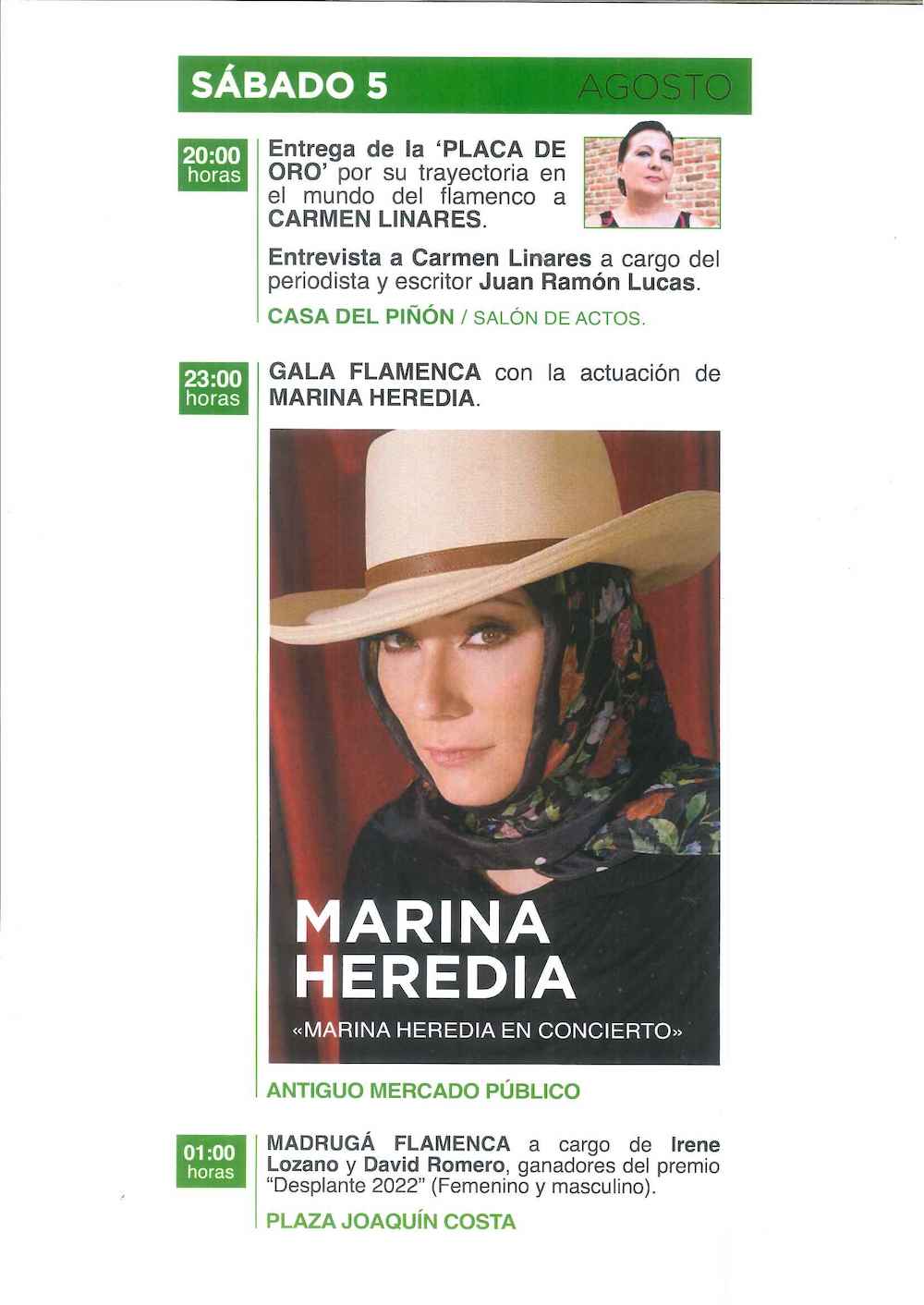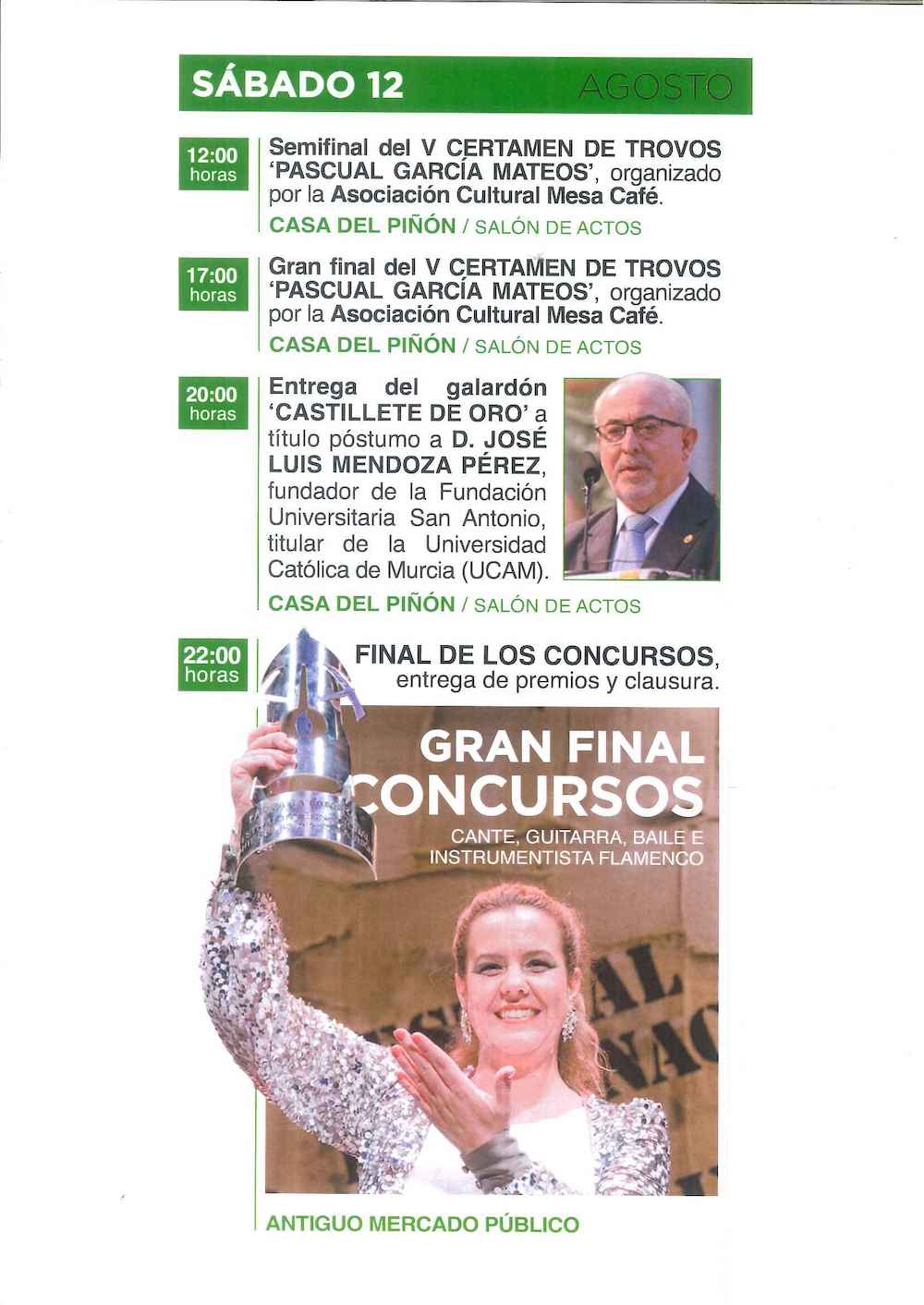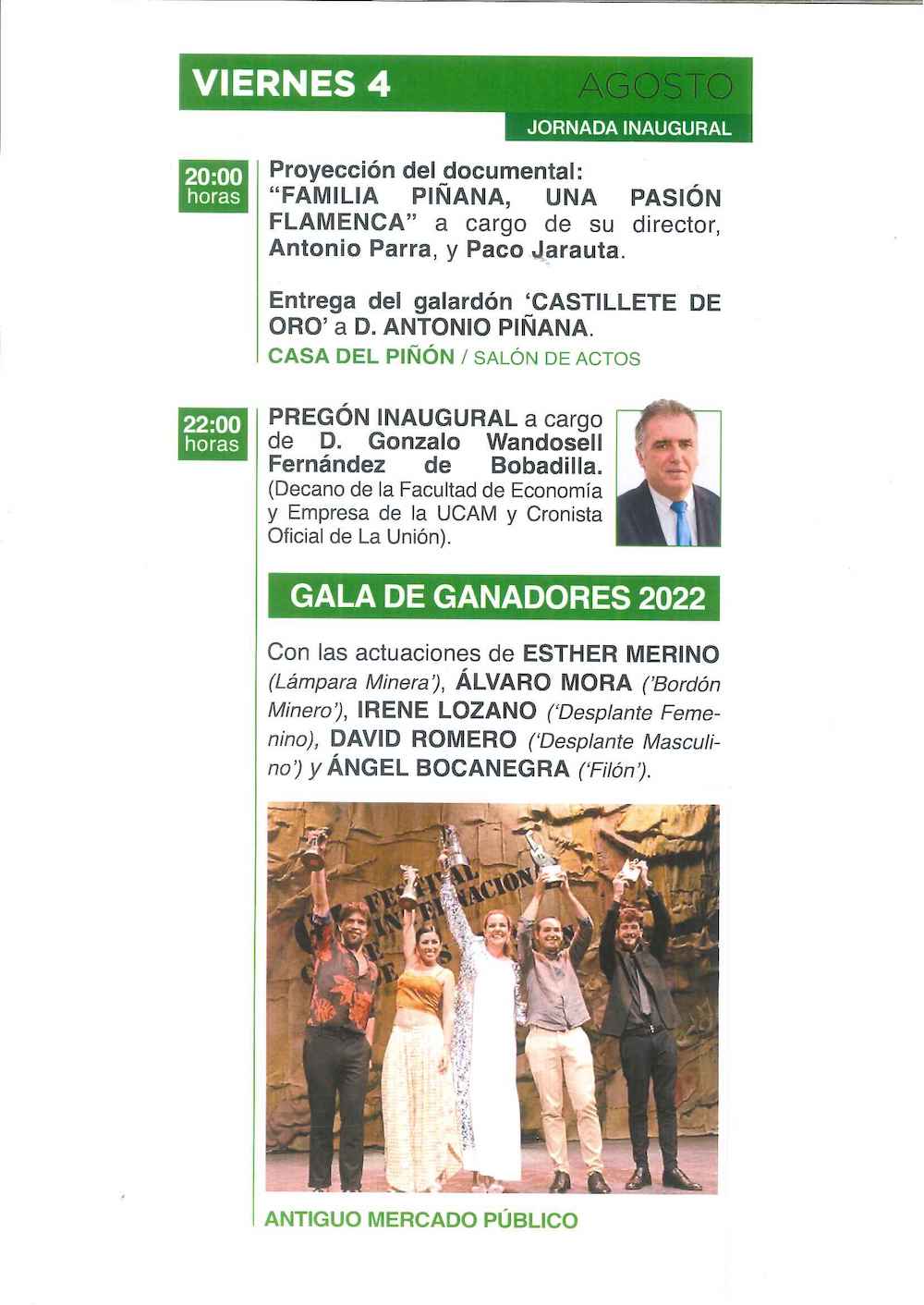 Una exposición pictórica que se inaugura el 28 de julio será la antesala de una programación que después se desarrollará durante once jornadas, del 2 al 12 de agosto, ambas inclusive, con las galas, el gran concurso flamenco, distinciones, ‘Madrugás flamencas’, exposiciones, misa minera, revista, cursos, trovos, conferencias…