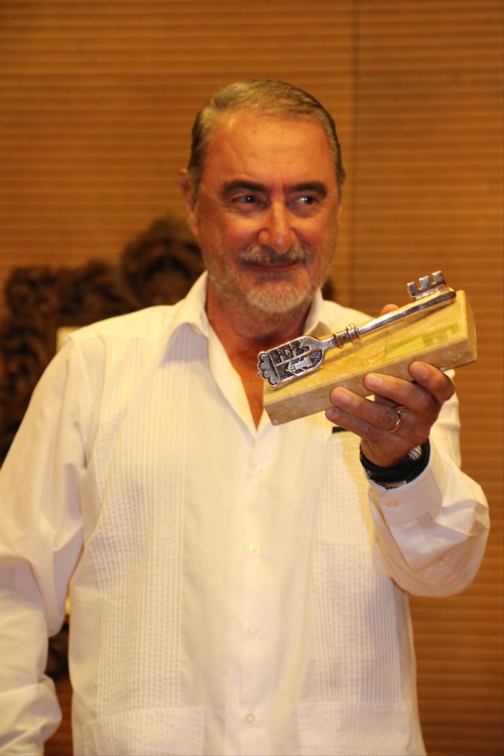 Herrera hizo alusión a la “larga historia de amor” con La Unión, con un “vínculo establecido de manera sincera, periódica y artística” que ha hecho que se convierta en embajador de esta tierra y su Festival Internacional del Cante de las Minas, defendiéndolo dentro y fuera de las ondas. Lo hizo tras recibir a manos del alcalde de La Unión y presidente de la Fundación Cante de las Minas, Joaquín Zapata, esa llave que le permite “tener la puerta abierta” de esta ciudad e instalarse “en cada uno de los corazones de los habitantes”, señaló el periodista.