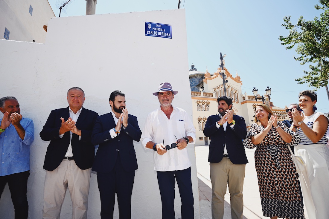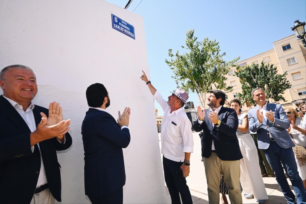 Una nueva placa brilla a los pies de la ‘Catedral del Cante’: la que pone el nombre de Carlos Herrera a una de sus calles más próximas. Tras la entrega de la ‘Llave de la ciudad’, los asistentes se desplazaron hasta allí para descubrir este nuevo indicativo. “Es un justo reconocimiento a una figura de esta relevancia profesional y mediática, que siempre que puede habla bien de la Región de Murcia y es un gran embajador”, destacó tras la inauguración el presidente de la Comunidad Autónoma de la Región de Murcia, Fernando López Miras, añadiendo que “lo sentimos como un ciudadano más de la Región”.