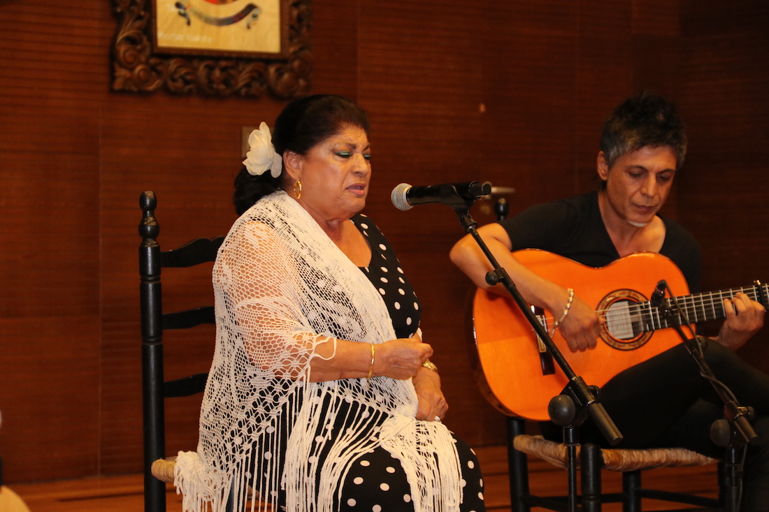 Durante el acto estuvieron presentes Marcos Ortuño, consejero de Cultura; Visitación Martínez, presidenta de la Asamblea Regional, y Julio García, director del Festival, así como el cronista oficial de La Unión, Gonzalo Wandosell, entre otros, y estuvo amenizado la actuación de Encarnación Fernández, acompañada al toque por Antonio Muñoz.