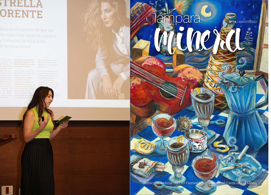Entre los diferentes modos que tiene la Fundación Cante de las Minas, organizadora del Festival Internacional del Cante de las Minas, de preservar el legado de la tierra minera de La Unión y su cultura, está realizar publicaciones que muestren la esencia del Festival y ayuden a poner en valor todo lo que acontece en torno a él y el flamenco. La publicación oficial es la revista ‘Lámpara Minera’ que este año cumple 16 ediciones, y que ha tenido su puesta de largo esta mañana en la Casa del Piñón a cargo de la jefa de Prensa del Festival, Lydia Martín, quien dio la bienvenida “a esta tierra minera, impregnada de un quejío que despierta cada mes de agosto en voces que se abren al mundo desde La Unión y que nos emocionan, nos remueven las entrañas y nos conectan con nuestra historia”.