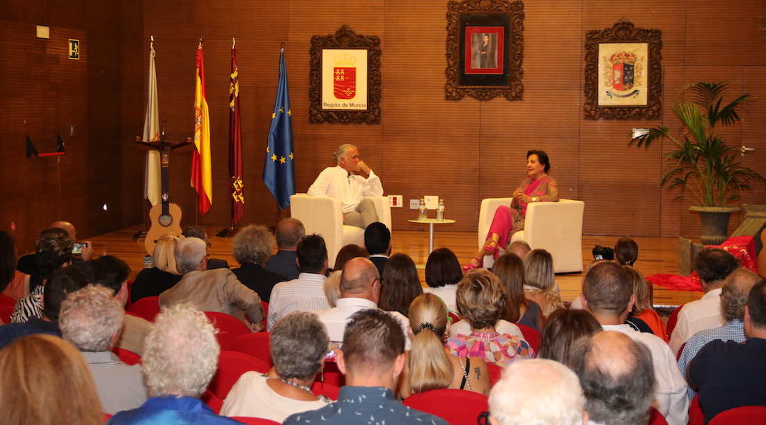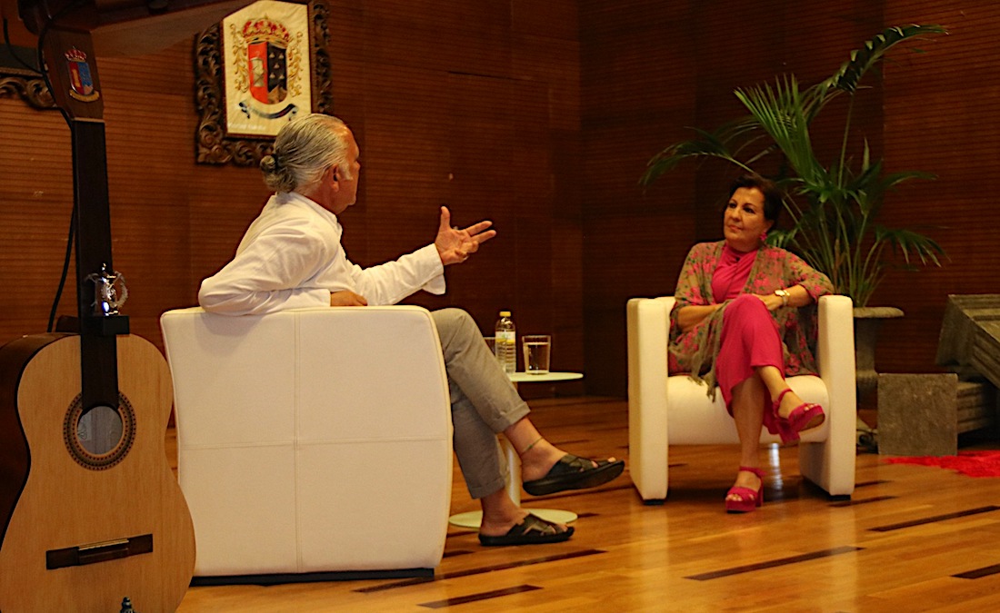 “Hoy estoy recuperando un viejo amor, que es el Festival Internacional del Cante de las Minas”. Con la sensación de volver a casa, Juan Ramón Lucas regresaba a La Unión para sentarse ante “la artista gigante”, su amiga Carmen Linares, lo que reconoció que le causaba “cierta excitación nerviosa”. Comenzó, más que una entrevista guiada por el periodista, una conversación fluida que hizo un repaso al flamenco y a los más de 40 años que la artista de Linares suma en este arte.