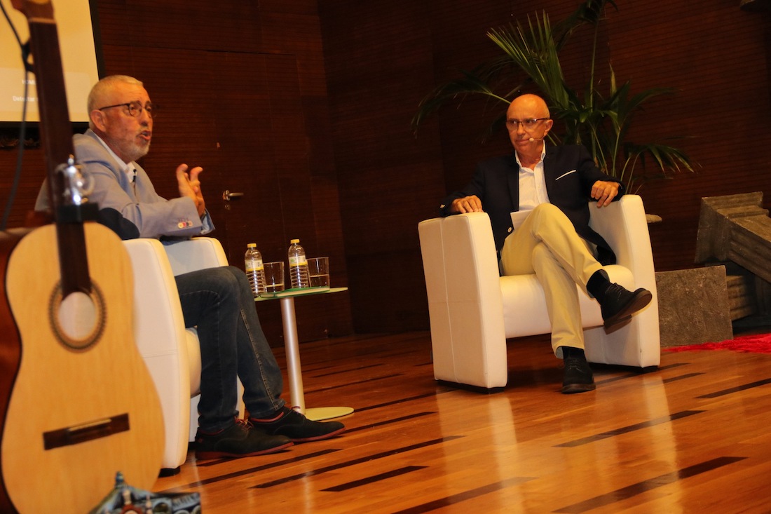 La figura de Asensio Sáez es una de las más conocidas para el pueblo de La Unión. El que definió su tierra como la ‘ciudad alucinante’, reflejó el sentir de sus vecinos, haciendo que este término fuera sinónimo de un lugar que adoraba y defendía a través de escritos y obras plásticas. Su particular ‘sol’ ha vuelto a iluminar el Festival Internacional del Cante de las Minas bajo la mirada de dos personas que le conocieron, admiraron y compartieron momentos inolvidables con él: el artista Esteban Bernal Aguirre, popularmente conocido como su ‘discípulo artístico’, y el catedrático de la Universidad de Murcia, José Belmonte, estudioso de la figura de Sáez. Fue este último, durante la charla-coloquio que ofrecieron conjuntamente dentro de la Agenda Cultural, quien reivindicó la necesidad “rescatarlo” y “hacer algo” a través de la Comunidad Autónoma y el Gobierno de España para “vender el buen género” de la tierra, “sacarlo y no dejarlo guardado”. Una propuesta que definió como “un valor seguro” gracias a la importancia de su legado, y propuso reeditar su obra para que vuelva a las librerías, volverlo a estudiar, montar algún congreso o jornada y “que salga a la luz”. “Hay que demostrar que La Unión es un pueblo increíble y único, literaria y pictóricamente hablando, en el conjunto de la Nación”, añadió.