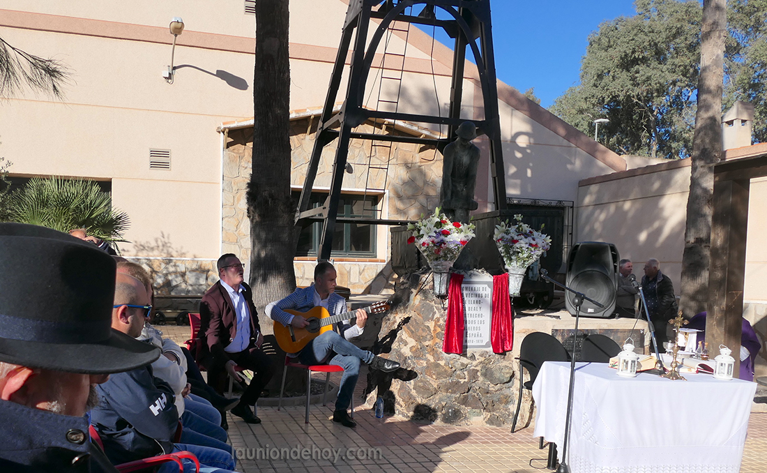Los unionenses Francisco Campos 'El Mone', como cantaor, y Juan Martínez 'El Mergo', a la guitarra, actuaron en la misa minera celebrada en El Llano del Beal con motivo de la celebración de Santa Bárbara.