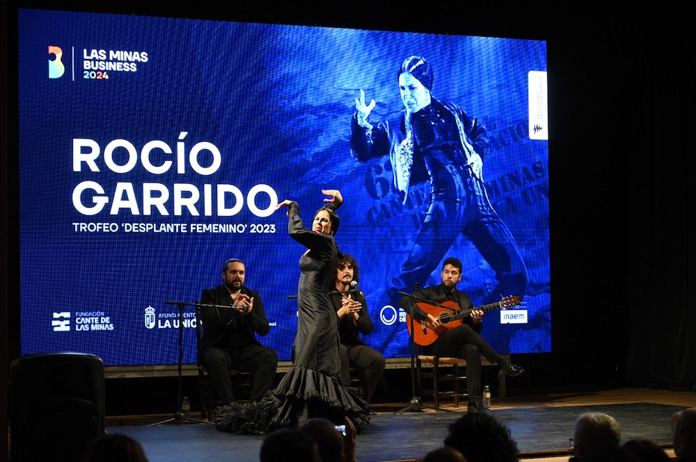 La iniciativa para conectar el tejido empresarial con el Festival Internacional del Cante de las Minas, como patrocinadores, tuvo una buena puesta de largo en el salón de actos del Museo Minero, en un acto que culminó con la brillante actuación de Rocío Garrido, premio 'Desplante 2023' del gran certamen flamenco.