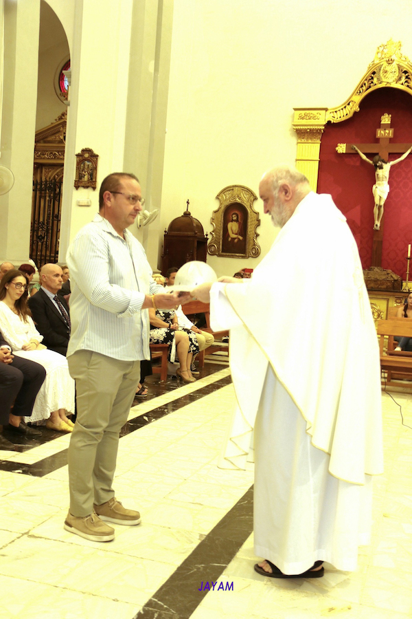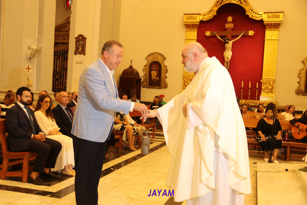 La eucaristía, oficiada por el sacerdote Luis Miguel García Máiquez, ha incluido las tradicionales ofrendas de los típicos elementos que utilizaban los trabajos de la mina. Entre los asistentes se encontra el alcalde y concejales de la corporación municipal y el director del festival, entre otros representantes de la sociedad civil unionense.