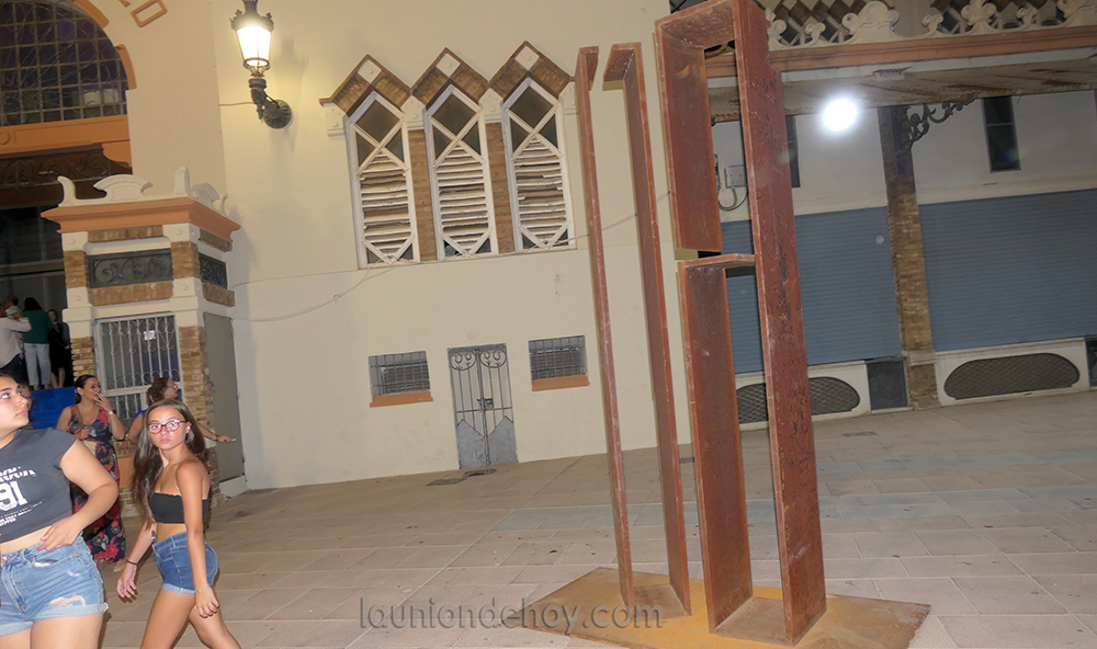 En nuestra ronda, coincidimos con dos parejas de unionenses que nos hicieron una pregunta que no supimos responder. Era sobre la gran pieza de acero que se colocó ante la fachada modernista. ¿Qué es?, nos plantearon. Les dijimos que se trata de una obra cedida durante el festival por el escultor uruguayo Juan de Andrés, uno de los que, otro año, hizo el cartel oficial del certamen. Sus respuestas: "Sí, vale, ya sabemos de quién es, ¿pero qué es?". Levanté las cejas (reconozco mi ignoracia en algunos terrenos artísticos) y se hizo el silencio, con lo que en ese momento escuché mejor los sonidos que brotaban desde 'La Catedral' por los que se metieron en 2023 en el 'olimpo flamenco', un lugar cuya ruta para llegar exige pisar suelo unionense.