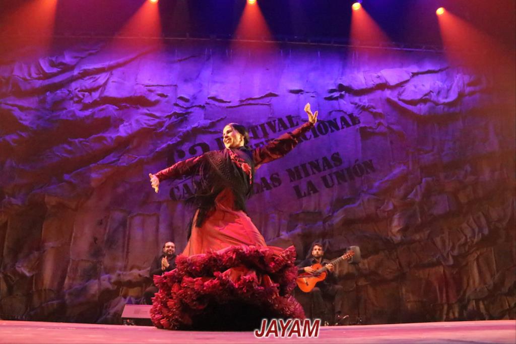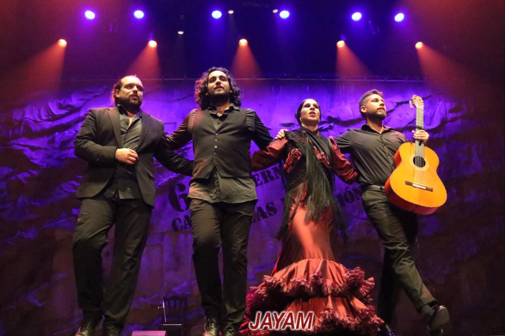 Tomás Parra y Miguel Ángel Sánchez ‘El Marqués’, representando al certamen 'Pascual García Mateos', abrieron la gala de los vencedores de la anterior edición del Cante de las Minas. En las fotos superiores también figuran los bailaores Yoel Vargas y Rocío Garrido.